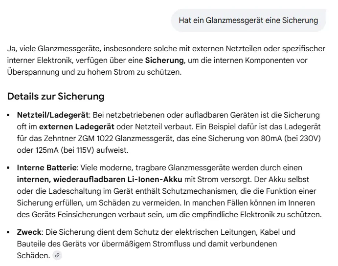 und ein Glanzmessgerät hat keine Sicherung.