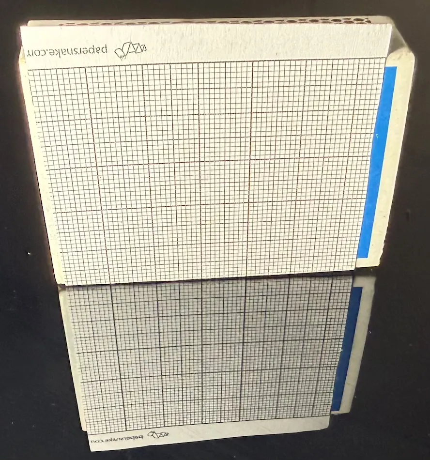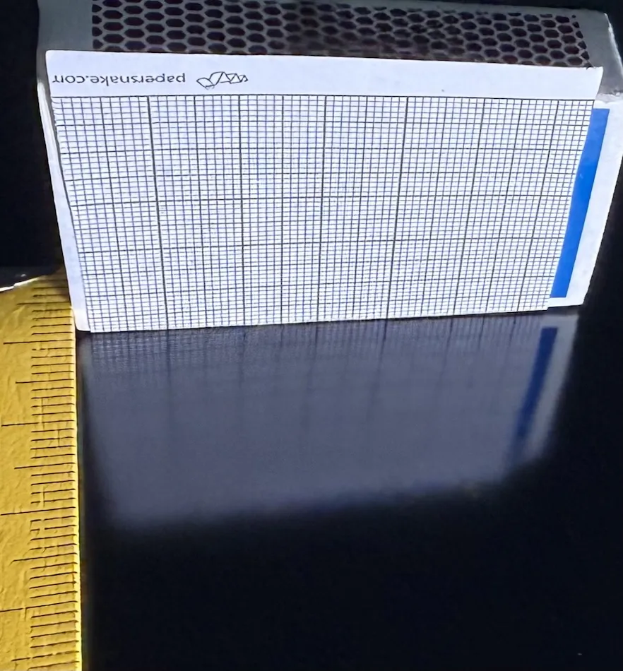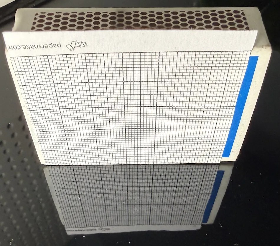 Hatte Millimeter-Papier-PDF aus dem Netz geholt, vom Drucker auf A5 verkleinern lassen und ein Stück davon auf eine Streichholzschachtel geklebt.